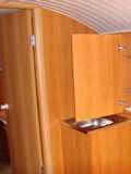 Конструкция: Каркасно-сварная металлическая основа, обшитая с внешней стороны гладким или профилированным листом, ламинированным ДСП - внутри. Окна пластиковые с двухкамерными стеклопакетами.