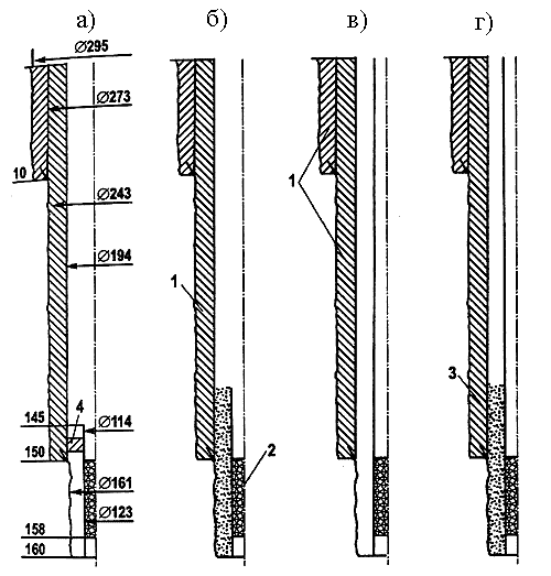 установленный впотай, 6) гравийный фильтр установленный впотай, в),г)