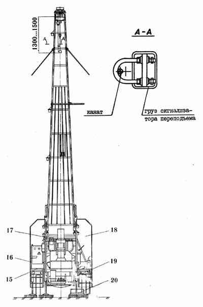 15- пол амортизационный; 16- каркас покрытия; 17 – прибор ПКИ-1; 18 - покрытие; 19 - механизм для свинчивания и развинчивание бурильных труб РТ - 1200М; 20- подсвечник