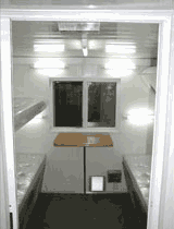 - бытовой отсек: микроволновая печь, двухкомфорочная плита, обеденный стол, стулья, кухонный стол, обогреватель бытовой 2 кВт;