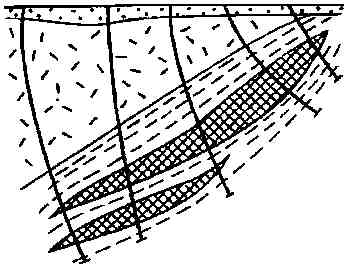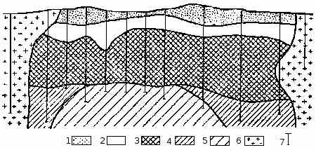 Рис. 3.5.6. Разведка глубокими скважинами колонкового бурения (разрез).