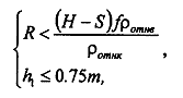 где S - понижение уровня при откачке, м; f - коэффициент крепости пород кровли по шкале ММ. Протодьяконова; m - мощность устойчивых пород кровли, м; h1 - высота свода естественного равновесия пород кровли, м; ρотав - относительная плотность воды, ρотав = 1; ρотнк - относительная плотность пород кровли, ρотнк = 2,5 - 3.