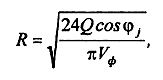 где Q - дебит скважины, м ³/ч; R - радиус полости, м; φ0- угол естественного откоса, φ0 ≈ 20 - 25°; Vф - скорость фильтрации, м/ч.